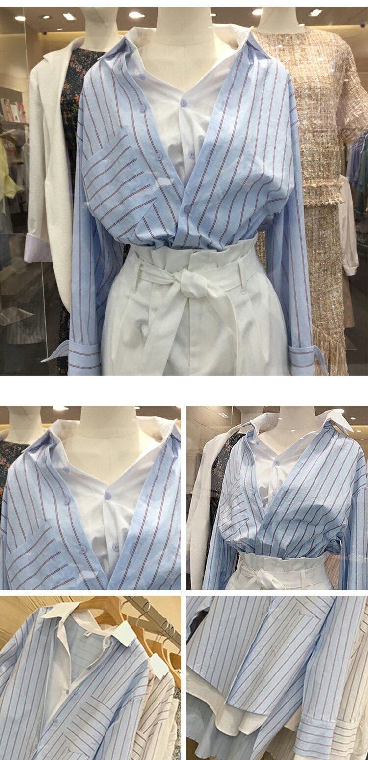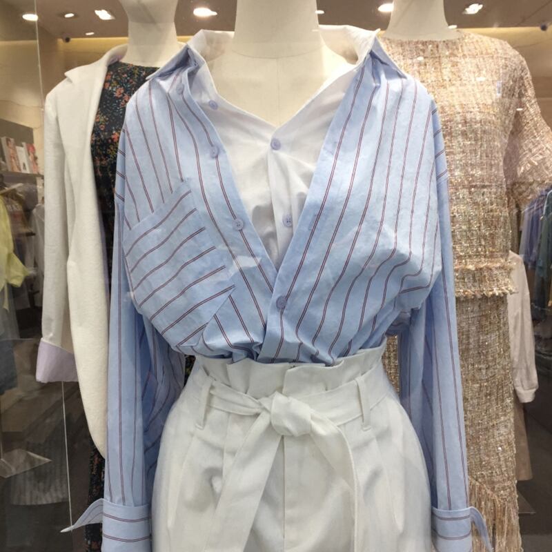 新品 ストライプシャツブラウス大人女子☆♥カワイイ♥トップス ロング ⦿韓国 オルチャン K-pop アイドル ジャケット スーツ ワンピース カーディガン ニット フーディー トレーナー キャミソール スカート シャツ ブラウス 5B3491120 | K clothig adult