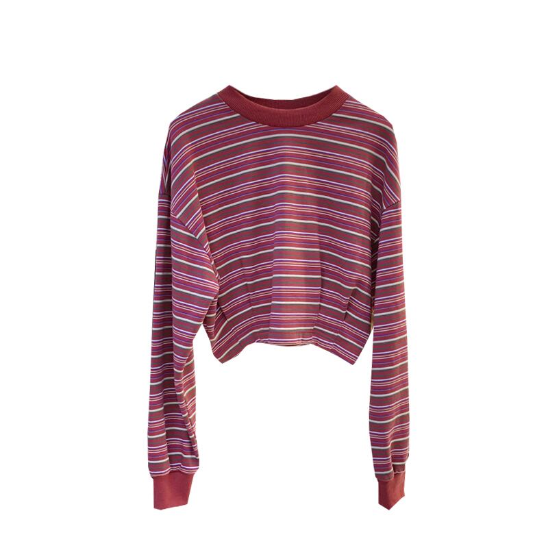 新品 ショート★ストライププルオーバー ♥カワイイ♥セーター ⦿韓国 オルチャン K-pop アイドル ジャケット スーツ ワンピース カーディガン ニット フーディー トレーナー キャミソール スカート シャツ ブラウス 5B3060325