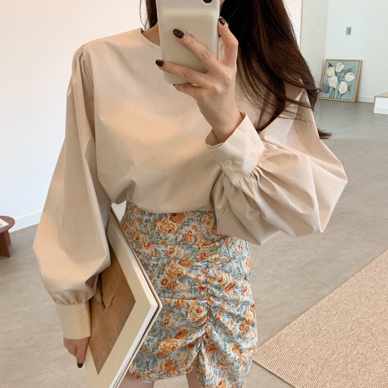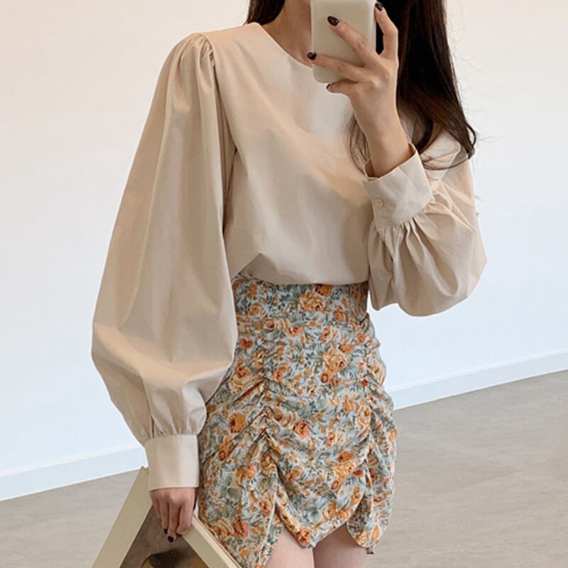 新品 ラウンドネックスリーブシャツブラウス花柄スカート ランタンスリーブ ⦿韓国 オルチャン K-pop アイドル ジャケット スーツ ワンピース カーディガン ニット フーディー トレーナー キャミソール スカート シャツ ブラウス 5A7046548 | K clothig adult