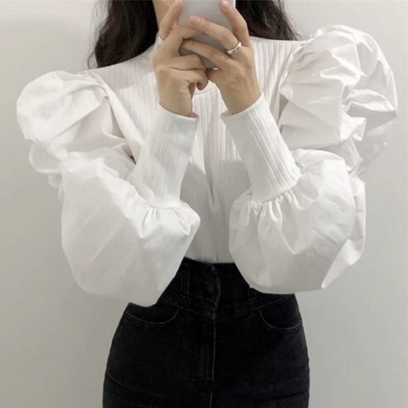 新品 ♡ラウンドネックスリーブスリムシャツブラウストップス 大人女子☆ レース ステッチ ⦿韓国 オルチャン K-pop アイドル ジャケット スーツ ワンピース カーディガン ニット フーディー トレーナー キャミソール スカート シャツ ブラウス 5A1435652 | K clothig adult