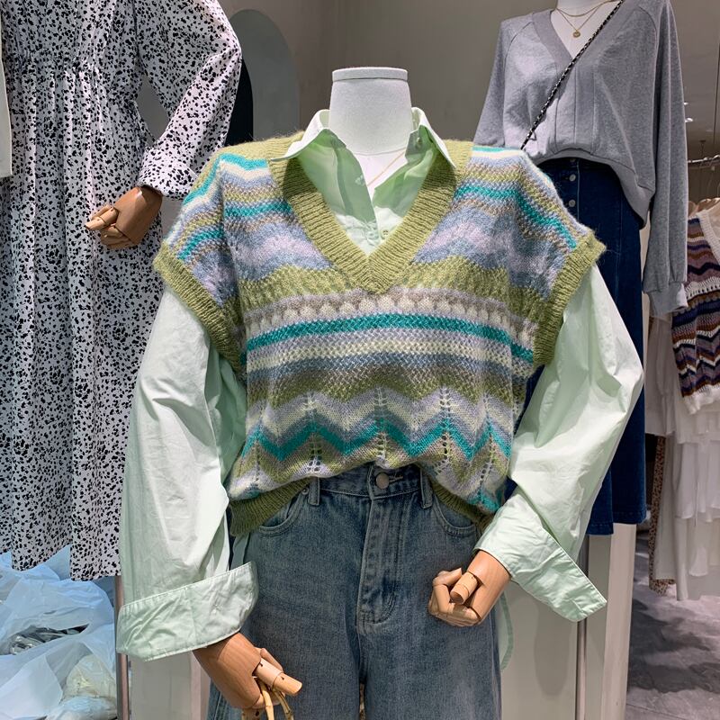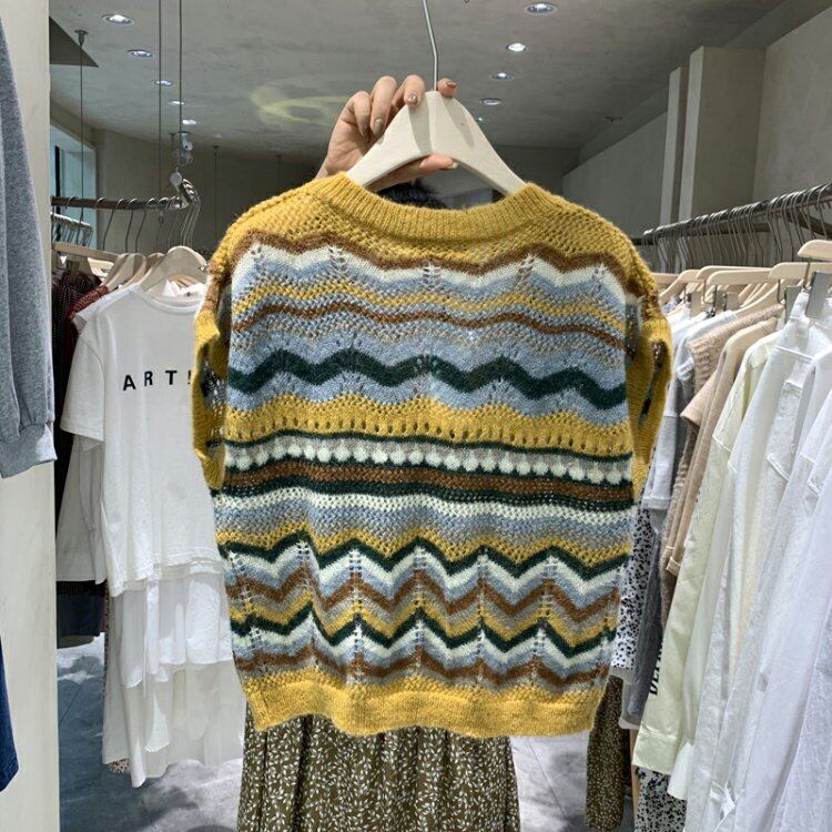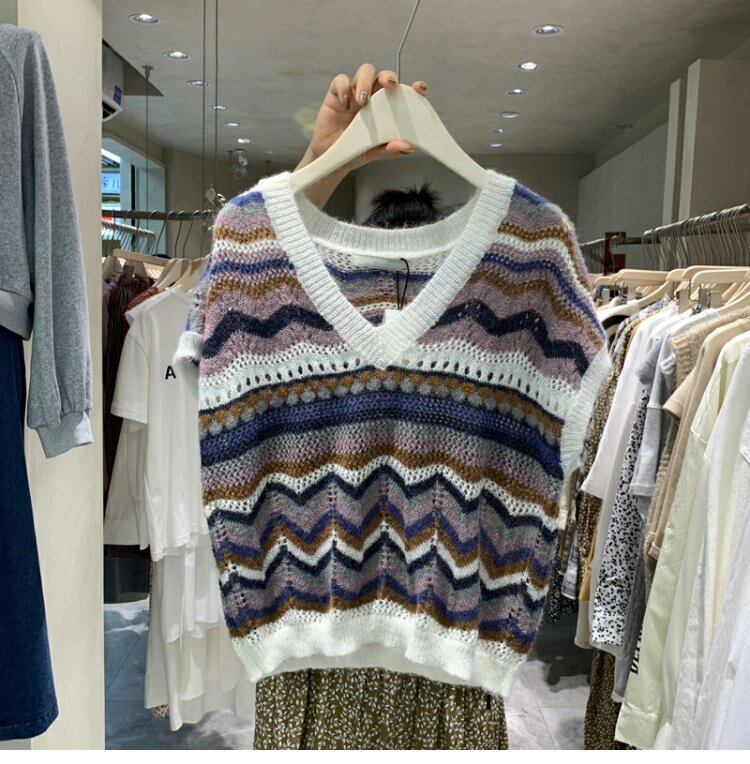 新品 カラーニットVネックノースリーブ白スリム ホワイト ⦿韓国 オルチャン K-pop アイドル ジャケット スーツ ワンピース カーディガン ニット フーディー トレーナー キャミソール スカート シャツ ブラウス 5B0591955 | K clothig adult