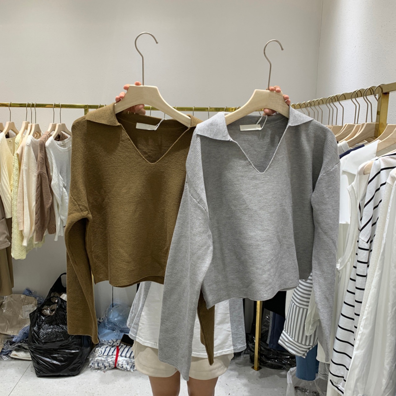 新品 カラーカジュアルニットVネックショートトップス ロング ピュア ⦿韓国 オルチャン K-pop アイドル ジャケット スーツ ワンピース カーディガン ニット フーディー トレーナー キャミソール スカート シャツ ブラウス 5B7057650