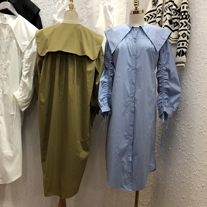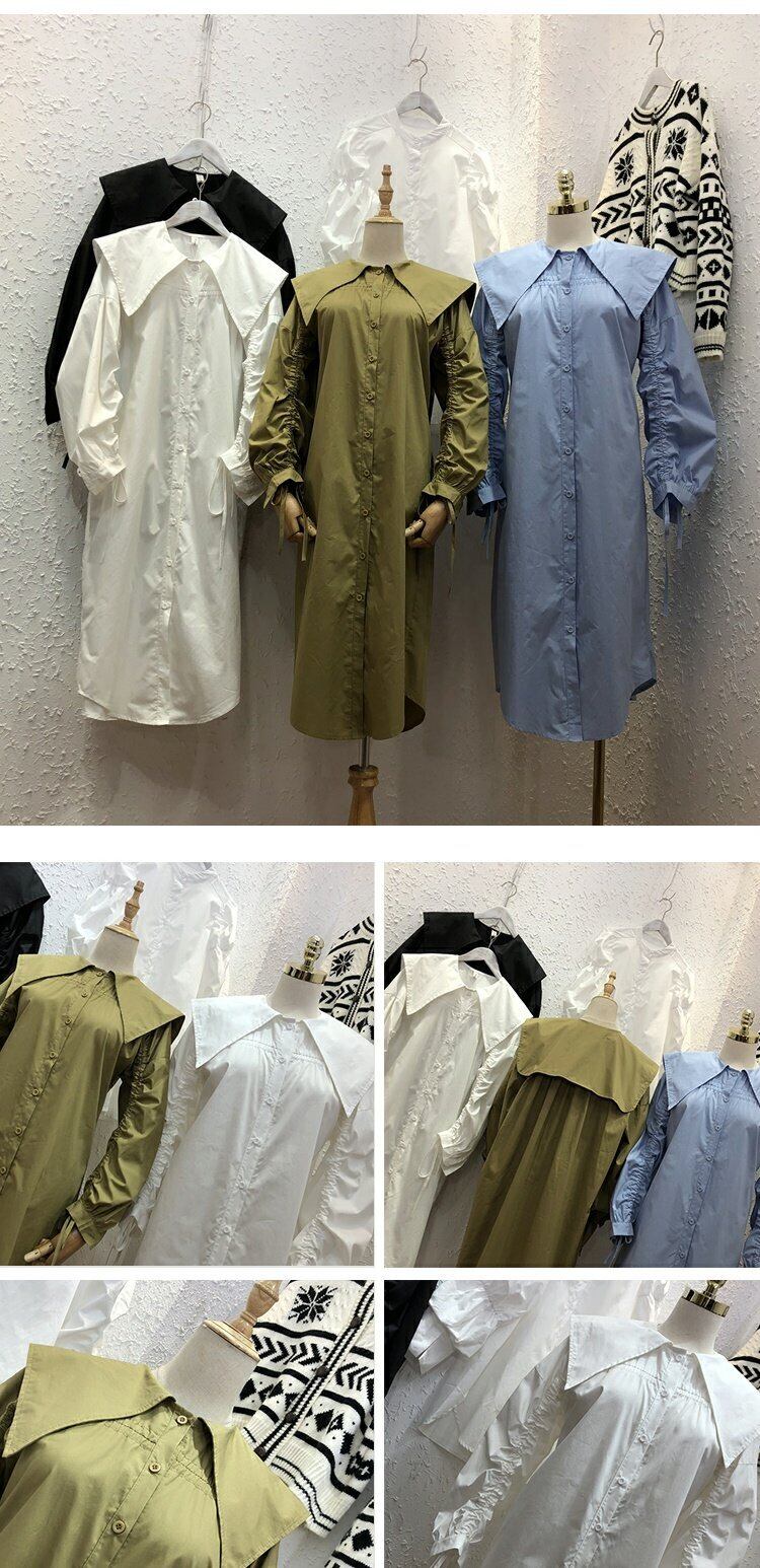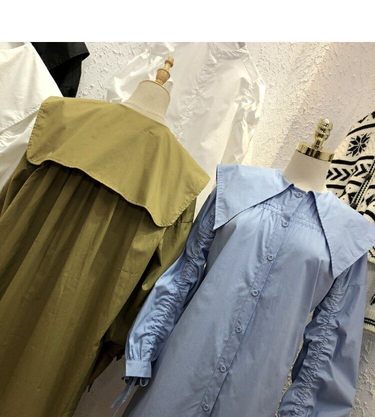 新品 ネイビーロングプリーツギャザーシャツブラウス大人女子☆ 長袖 ⦿韓国 オルチャン K-pop アイドル ジャケット スーツ ワンピース カーディガン ニット フーディー トレーナー キャミソール スカート シャツ ブラウス 5B2965147 | K clothig adult
