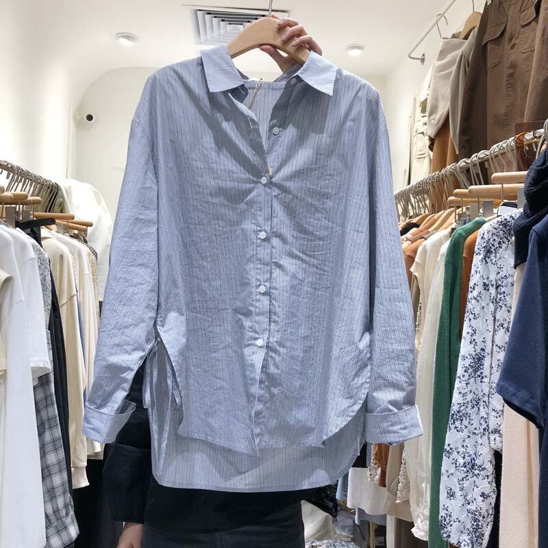 新品 ソリッド カラーストライプシャツブラウス スウィート ソリッドカラー ⦿韓国 オルチャン K-pop アイドル ジャケット スーツ ワンピース カーディガン ニット フーディー トレーナー キャミソール スカート シャツ ブラウス 5B3864456