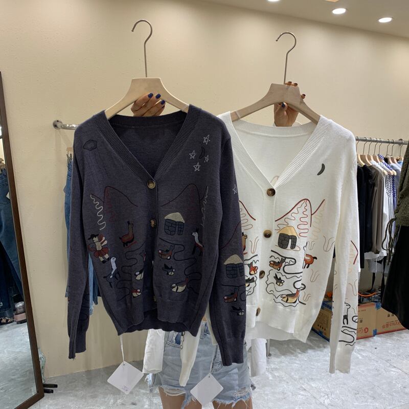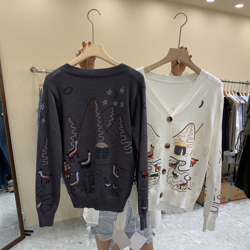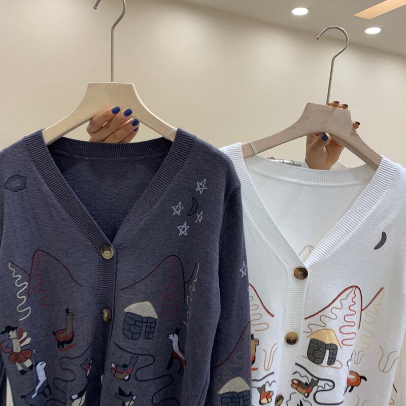 新品 Vネックパターンプリントニットカーディガン ロング ⦿韓国 オルチャン K-pop アイドル ジャケット スーツ ワンピース カーディガン ニット フーディー トレーナー キャミソール スカート シャツ ブラウス 5B7378826 | K clothig adult