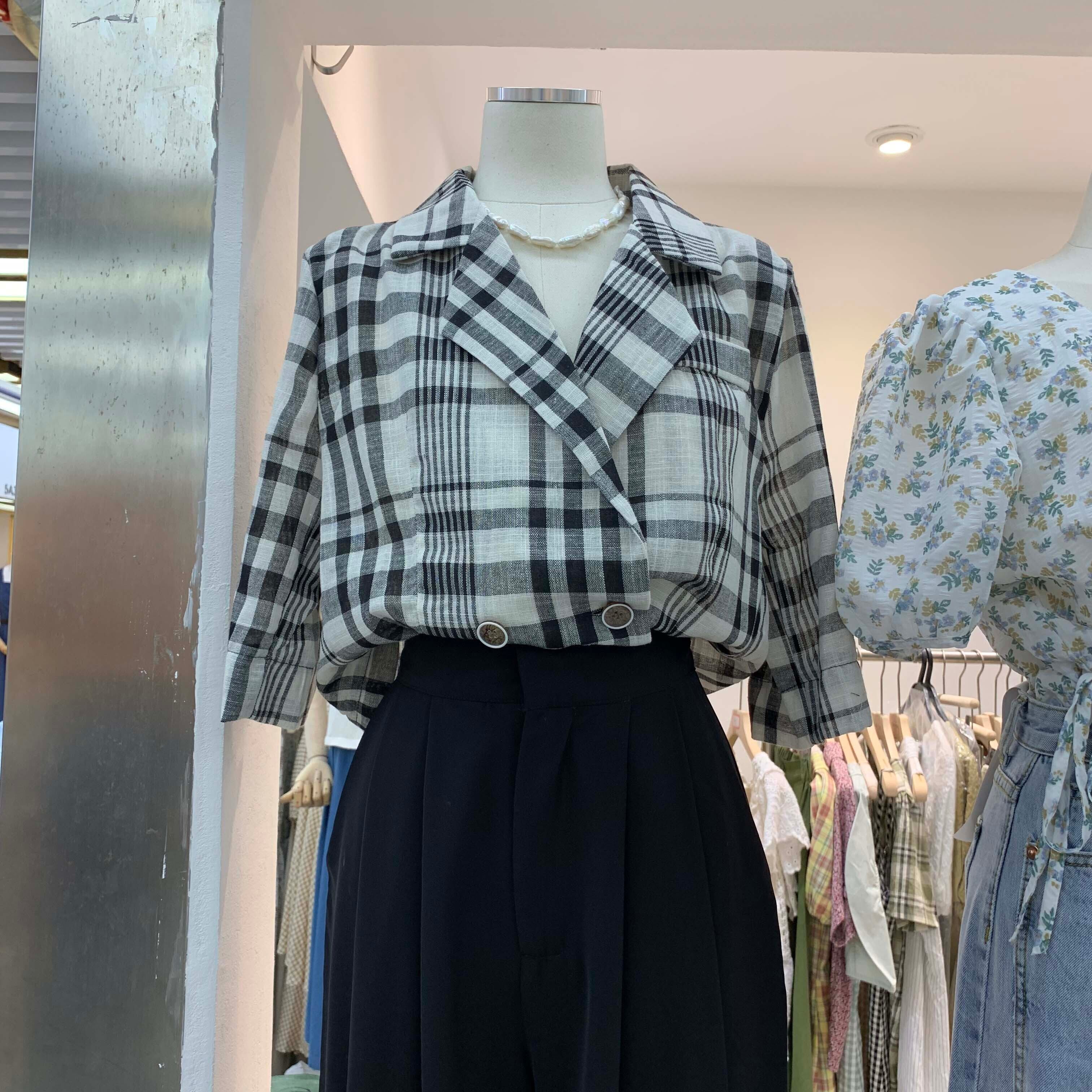 新品 ♥カワイイ♥チェック柄スリーブブラウス ⦿韓国 オルチャン K-pop アイドル ジャケット スーツ ワンピース カーディガン ニット フーディー トレーナー キャミソール スカート シャツ ブラウス 5B2659227 | K clothig adult