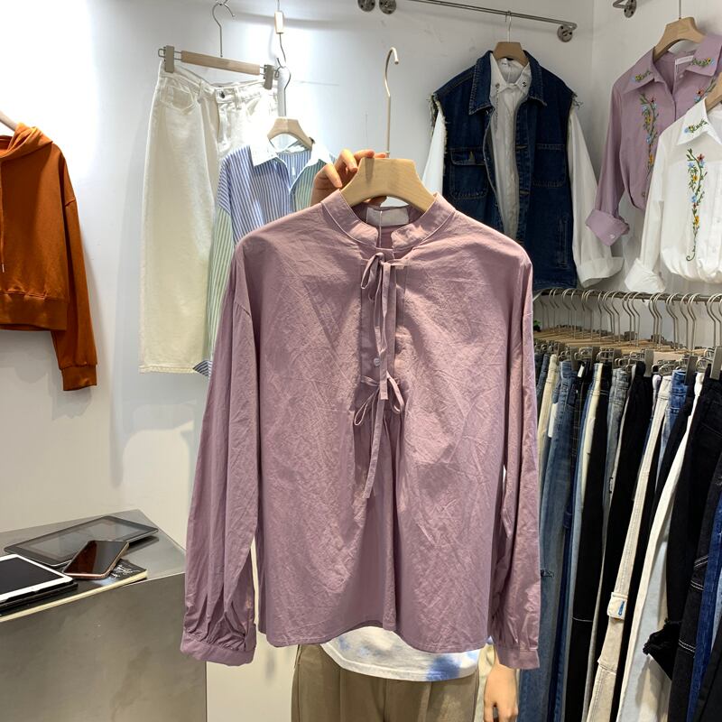 新品 オータム♥カワイイ♥ルーズシャツブラウス長袖スリーブトップス ロング コットン 秋物 ピュア ⦿韓国 オルチャン K-pop アイドル ジャケット スーツ ワンピース カーディガン ニット フーディー トレーナー キャミソール スカート シャツ ブラウス 5B2452148