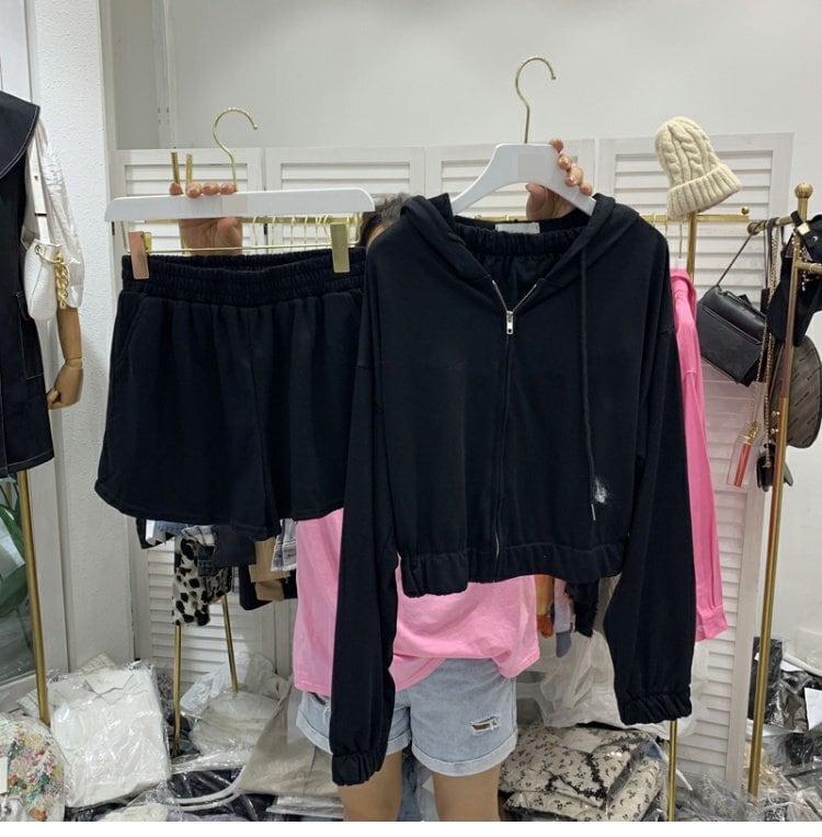 新品 フードジッパーセーター トップス ストレッチ★ショートパンツ ロング エラスティック 伸縮 ⦿韓国 オルチャン K-pop アイドル ジャケット スーツ ワンピース カーディガン ニット フーディー トレーナー キャミソール スカート シャツ ブラウス 5B8406409