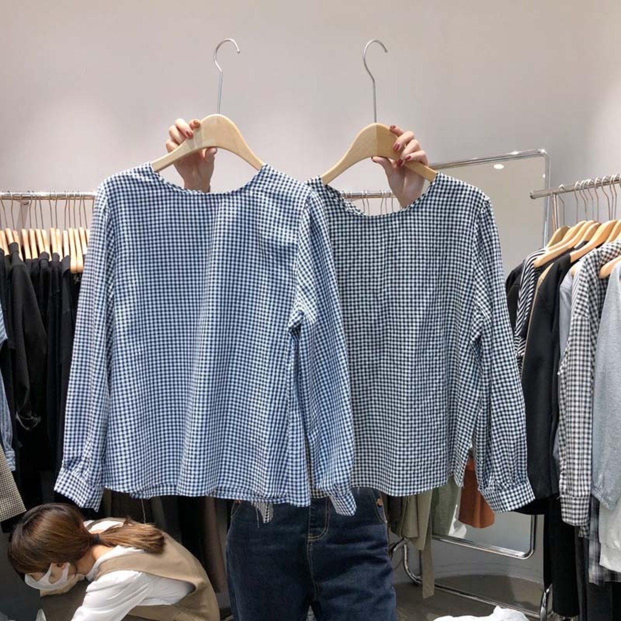 新品 チェック柄カラースリーブトップス スウィート ⦿韓国 オルチャン K-pop アイドル ジャケット スーツ ワンピース カーディガン ニット フーディー トレーナー キャミソール スカート シャツ ブラウス 5B9498620