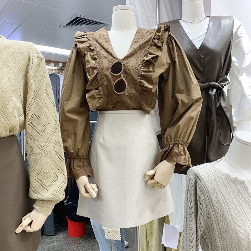 新品 トップス Vネックプルオーバー シャツブラウス ⦿韓国 オルチャン K-pop アイドル ジャケット スーツ ワンピース カーディガン ニット フーディー トレーナー キャミソール スカート シャツ ブラウス 5B9422352