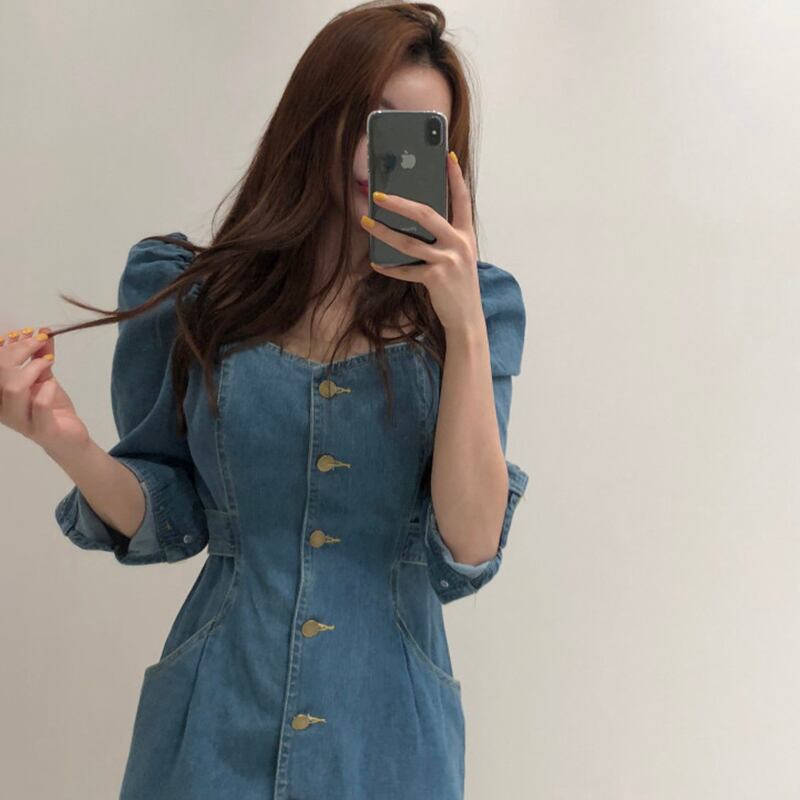 新品ハイウエストスリムボタンワンピースドレスOP★スリーブ レトロ スクウェア ⦿韓国 オルチャン K-pop アイドル ジャケット スーツ ワンピース カーディガン ニット フーディー トレーナー キャミソール スカート シャツ ブラウス 5A1289940 | K clothig adult