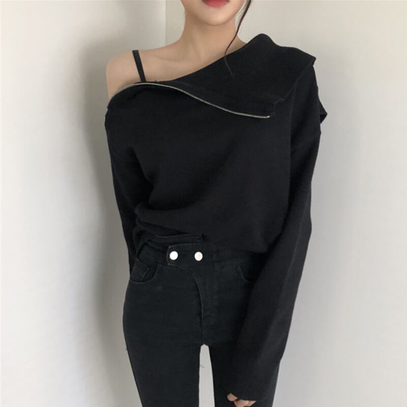 新品 サイドジッパーオフショルダーセーター 大人女子☆ ロング エレガント ⦿韓国 オルチャン K-pop アイドル ジャケット スーツ ワンピース カーディガン ニット フーディー トレーナー キャミソール スカート シャツ ブラウス 5A4449200 | K clothig adult