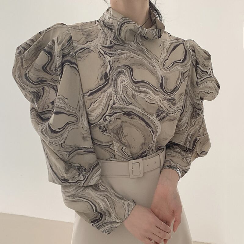 新品 プリントスリーブシフォンシャツブラウストップス エレガント ⦿韓国 オルチャン K-pop アイドル ジャケット スーツ ワンピース カーディガン ニット フーディー トレーナー キャミソール スカート シャツ ブラウス 5A5795163 | K clothig adult