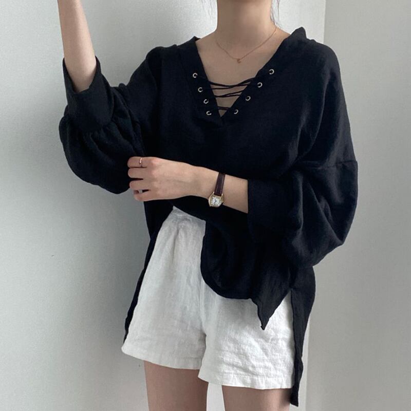 新品 ミニマリスト♥カワイイ♥Vネックスリーブシャツブラウス大人女子☆ ランタンスリーブ ⦿韓国 オルチャン K-pop アイドル ジャケット スーツ ワンピース カーディガン ニット フーディー トレーナー キャミソール スカート シャツ ブラウス 5A5968009 | K clothig adult