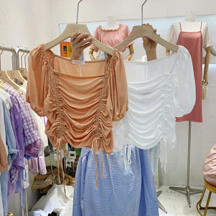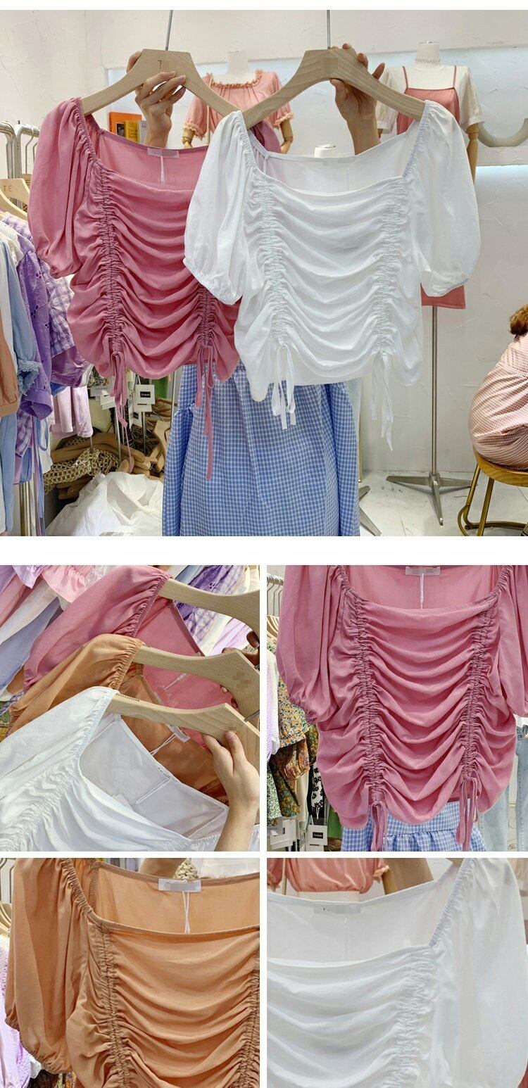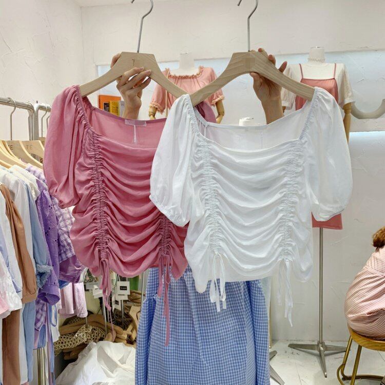 新品 ギャザー♥カワイイ♥プルオーバー シャツブラウス大人女子☆ スクウェア ⦿韓国 オルチャン K-pop アイドル ジャケット スーツ ワンピース カーディガン ニット フーディー トレーナー キャミソール スカート シャツ ブラウス 5B1430702