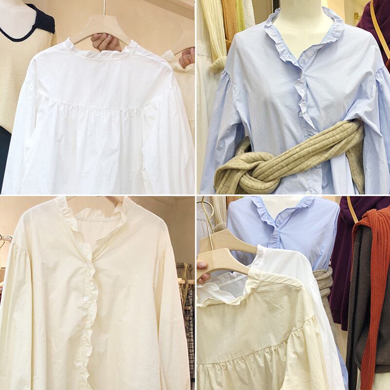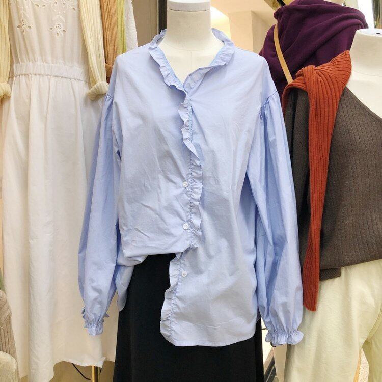 新品 ソリッド カラーレースシャツブラウス ロング ソリッドカラー ⦿韓国 オルチャン K-pop アイドル ジャケット スーツ ワンピース カーディガン ニット フーディー トレーナー キャミソール スカート シャツ ブラウス 5B3683020