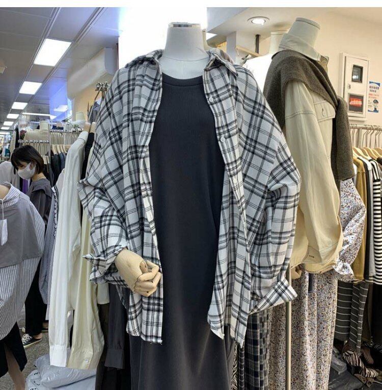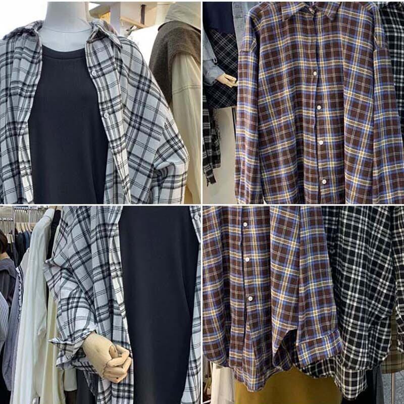 新品 カジュアルチェック柄シャツブラウス ロング ⦿韓国 オルチャン K-pop アイドル ジャケット スーツ ワンピース カーディガン ニット フーディー トレーナー キャミソール スカート シャツ ブラウス 5B0885924 | K clothig adult
