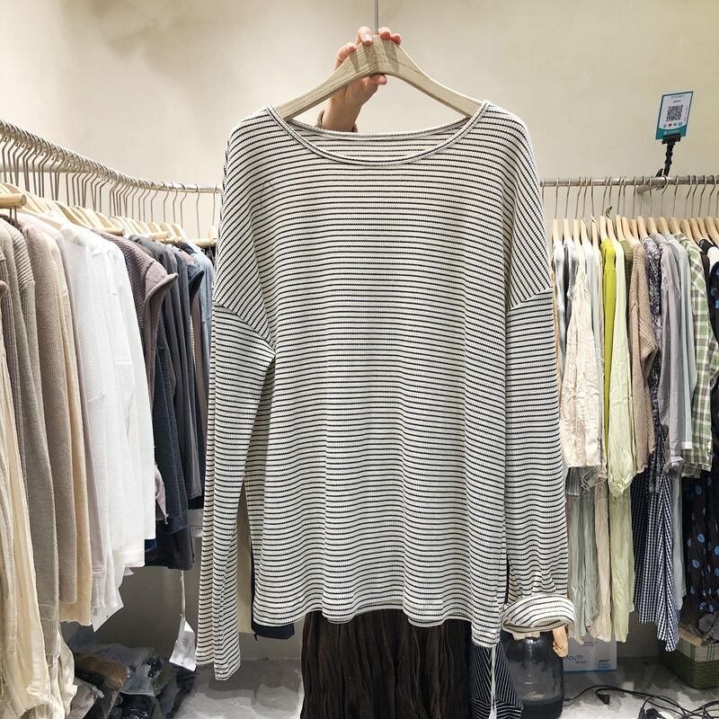新品 ラウンドネックプルオーバー ストライプトップス ロング ⦿韓国 オルチャン K-pop アイドル ジャケット スーツ ワンピース カーディガン ニット フーディー トレーナー キャミソール スカート シャツ ブラウス 5B7470956