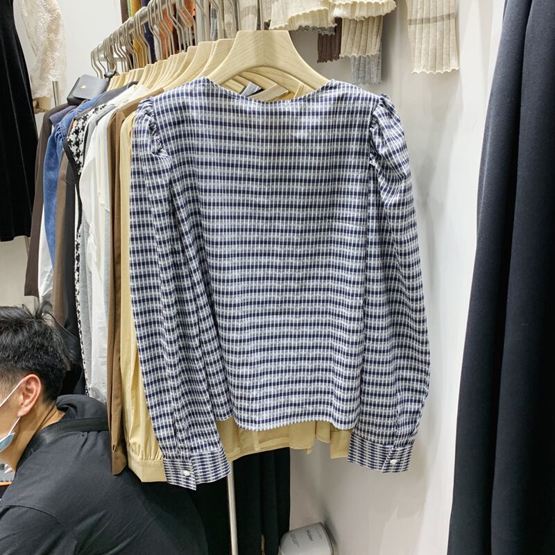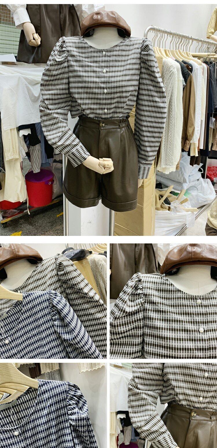 新品 ラウンドネックパールボタンチェック柄シャツブラウスカーディガン大人女子☆ 真珠 ⦿韓国 オルチャン K-pop アイドル ジャケット スーツ ワンピース カーディガン ニット フーディー トレーナー キャミソール スカート シャツ ブラウス 5B0373856 | K clothig adult