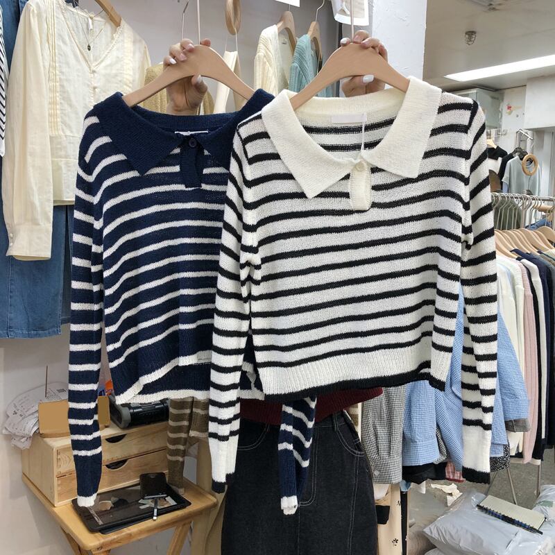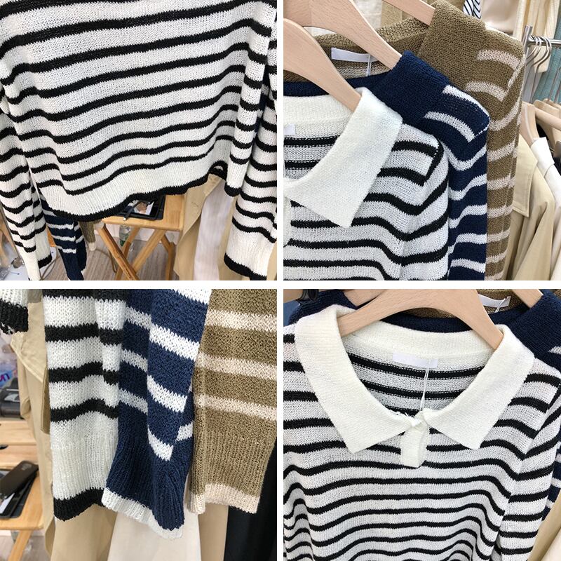 新品 ストライプニットトップス 大人女子☆ スウィート ⦿韓国 オルチャン K-pop アイドル ジャケット スーツ ワンピース カーディガン ニット フーディー トレーナー キャミソール スカート シャツ ブラウス 5B3084633