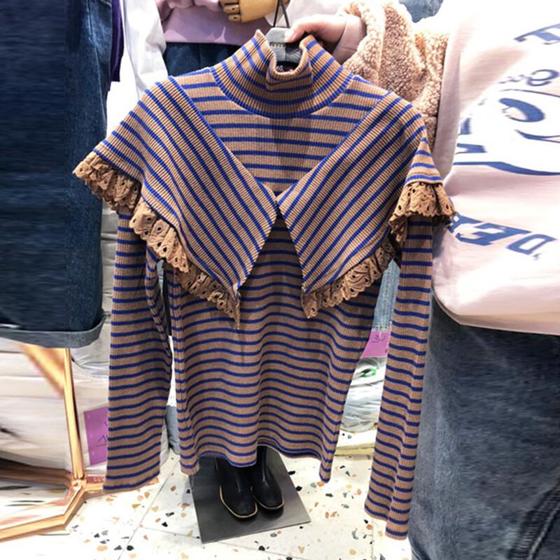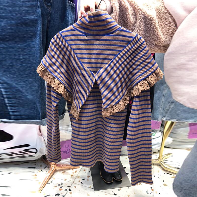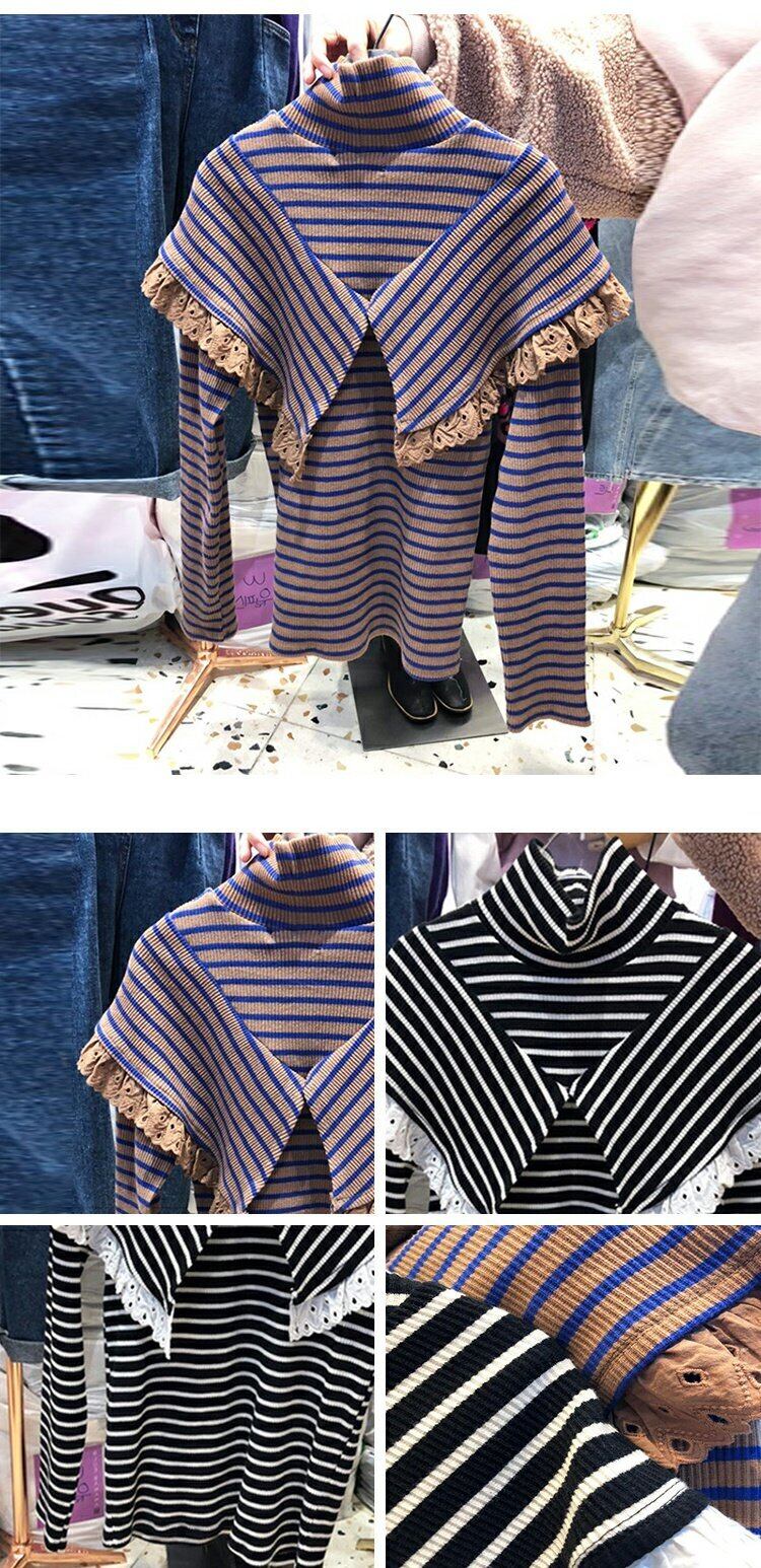新品 レースストライプセーター ⦿韓国 オルチャン K-pop アイドル ジャケット スーツ ワンピース カーディガン ニット フーディー トレーナー キャミソール スカート シャツ ブラウス 5B2151066