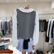 新品 オータムシャツブラウススリーブチェック柄トップス 秋物 ⦿韓国 オルチャン K-pop アイドル ジャケット スーツ ワンピース カーディガン ニット フーディー トレーナー キャミソール スカート シャツ ブラウス 5B5917320