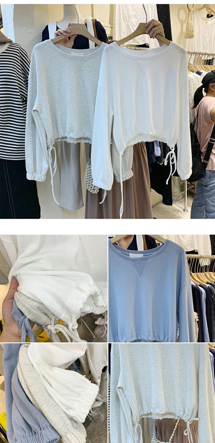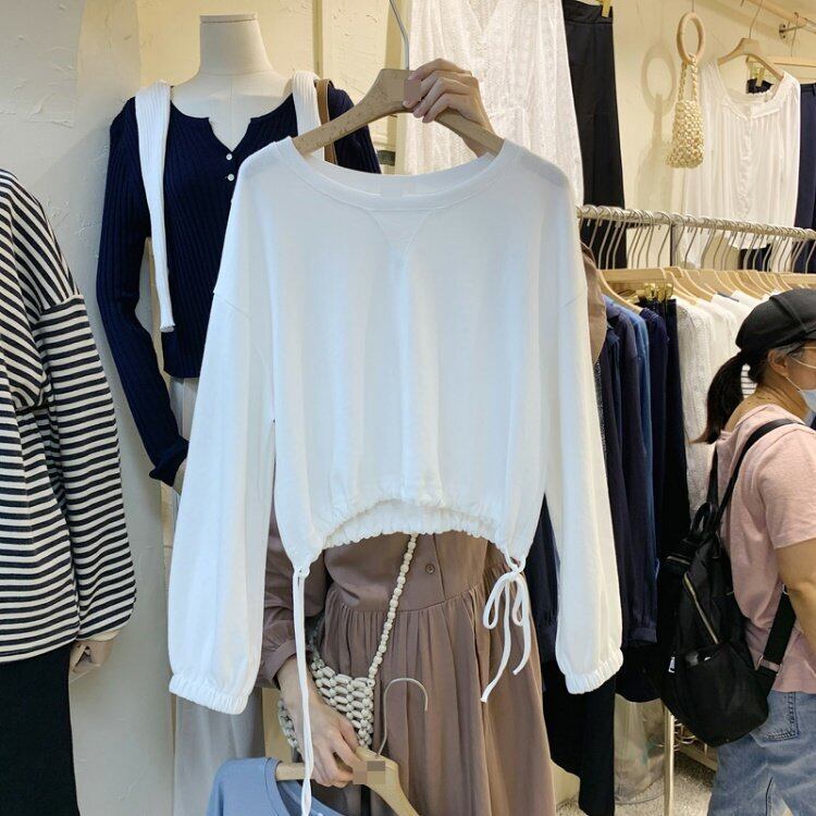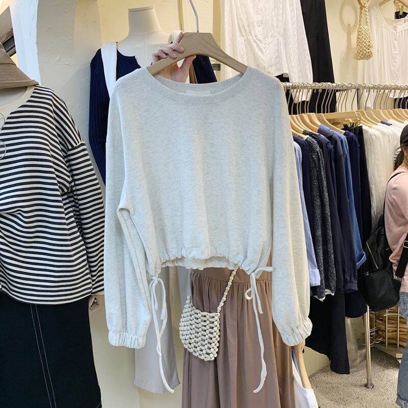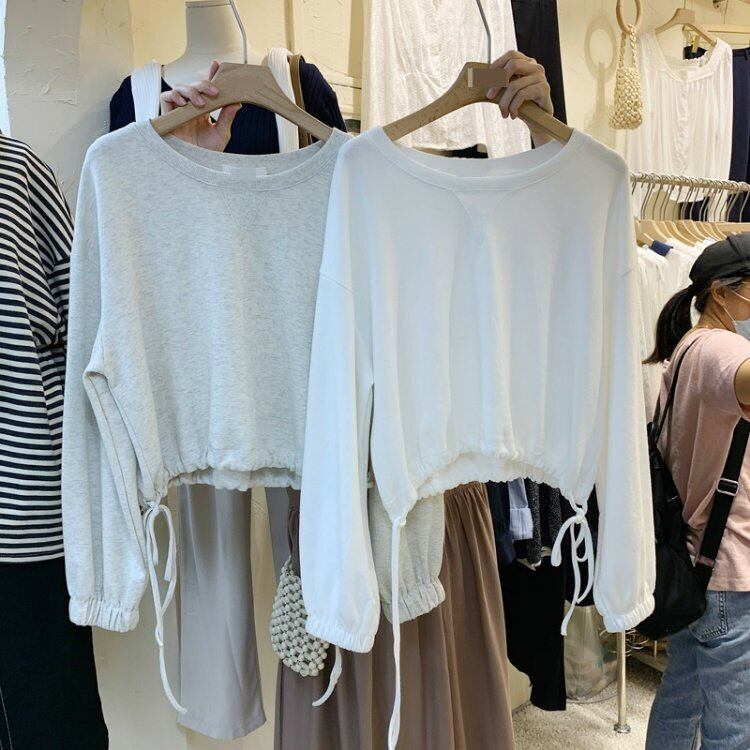 新品 オータムショートギャザールーズラウンドネックプルオーバー スウェット 秋物 ピュア ⦿韓国 オルチャン K-pop アイドル ジャケット スーツ ワンピース カーディガン ニット フーディー トレーナー キャミソール スカート シャツ ブラウス 5B1536101