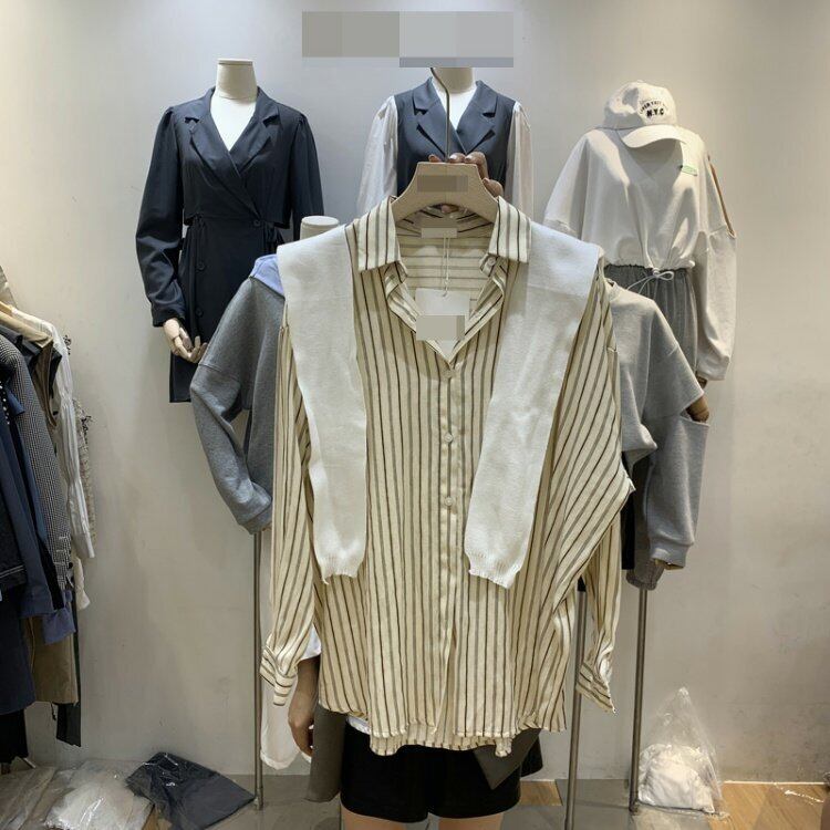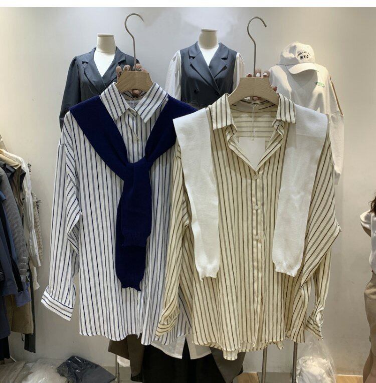 新品 ストライプシャツブラウスニット ロング ⦿韓国 オルチャン K-pop アイドル ジャケット スーツ ワンピース カーディガン ニット フーディー トレーナー キャミソール スカート シャツ ブラウス 5B85259165907 | K clothig adult