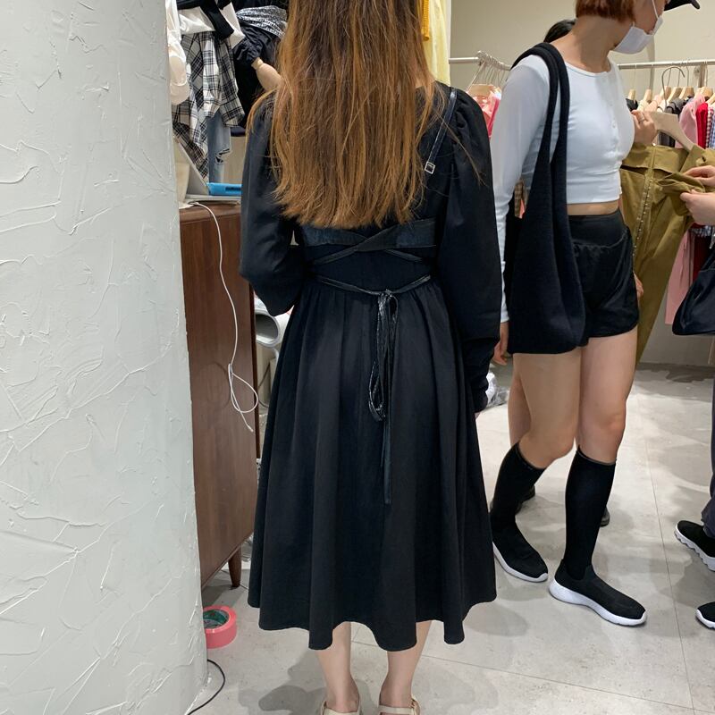 KOREAロングコットンワンピースドレスOP スクウェアネック ⦿韓国 オルチャン K-pop アイドル ジャケット スーツ ワンピース カーディガン ニット フーディー トレーナー キャミソール スカート シャツ ブラウス 5B7611142240 | K clothig adult