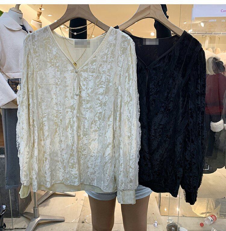 新品 ベルベットシフォンレースカーディガン Vネック シャツブラウス 大人女子☆ゴールド ロング スウィート 冬物 ⦿韓国 オルチャン K-pop アイドル ジャケット スーツ ワンピース カーディガン ニット フーディー トレーナー キャミソール スカート シャツ ブラウス 5B43299710116 | K clothig adult