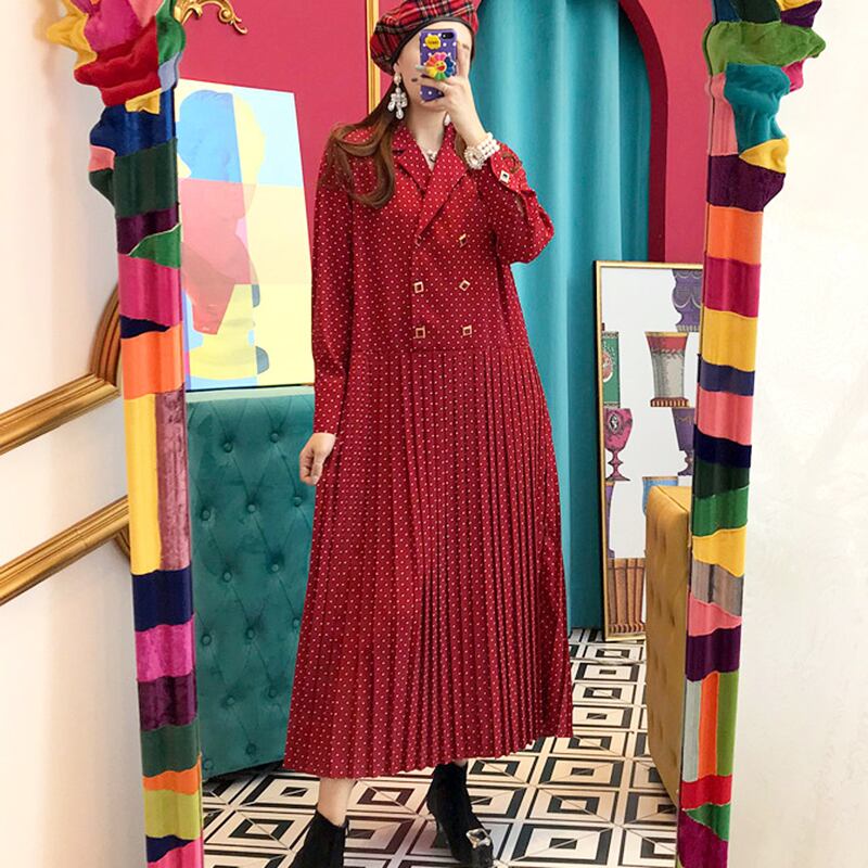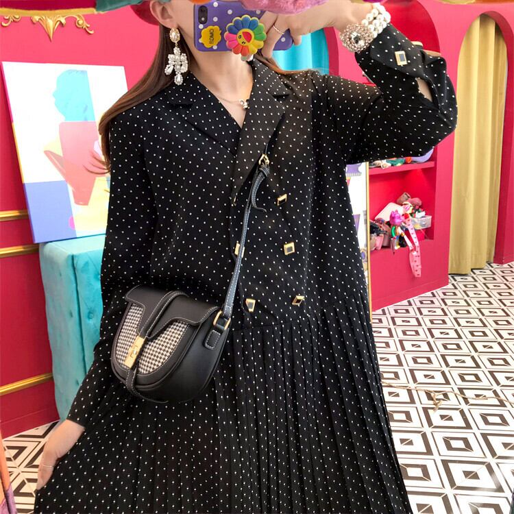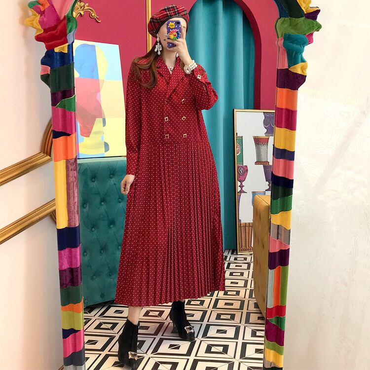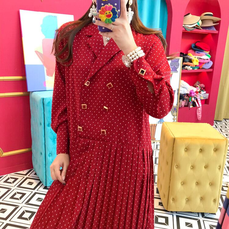 KOREAゆったりサイズ水玉ダブルブレストひざ丈ワンピース プリーツスカート 大人女子☆長袖スリーブ ロング スウィート⦿韓国 オルチャン K-pop アイドル ジャケット スーツ ワンピース カーディガン ニット フーディー トレーナー キャミソール スカート シャツ ブラウス 5A47016333223 | K clothig adult