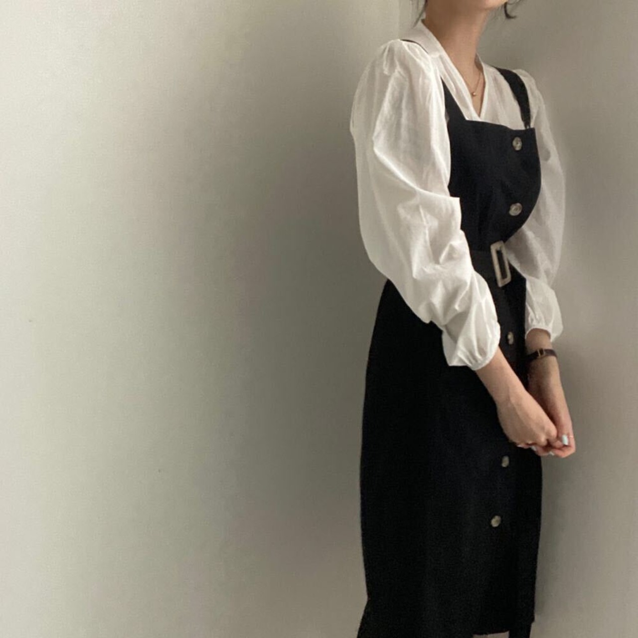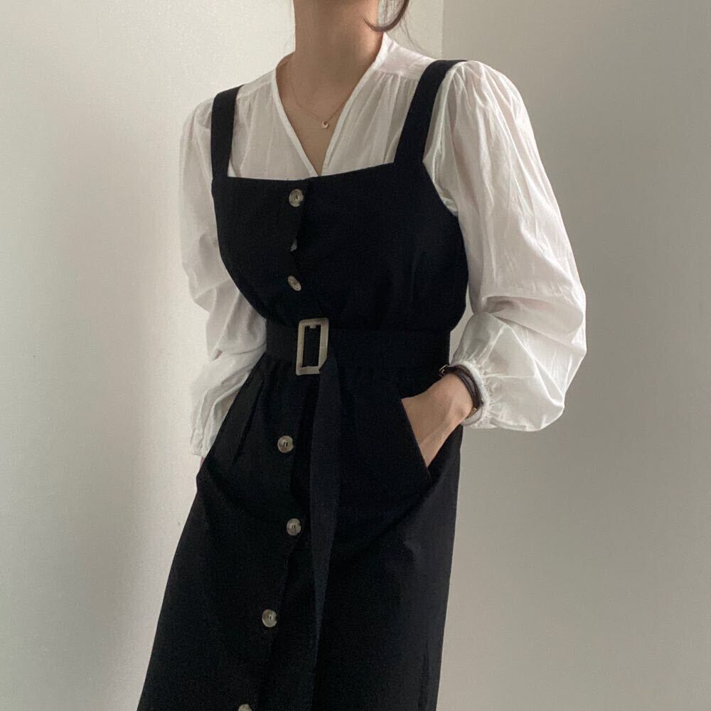 新品Vネックスリーブシャツブラウス or ベルトハーネスストラップスカート⦿韓国 オルチャン K-pop アイドル ジャケット スーツ ワンピース カーディガン ニット フーディー トレーナー キャミソール スカート シャツ ブラウス 5A85354041321 | K clothig adult