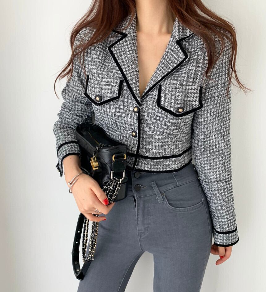 新品 ギンガムチェックツィードショート丈ジャケット 大人女子☆ ロング エレガント ⦿韓国 オルチャン K-pop アイドル ジャケット スーツ ワンピース カーディガン ニット フーディー トレーナー キャミソール スカート シャツ ブラウス 5A13920736207 | K clothig adult