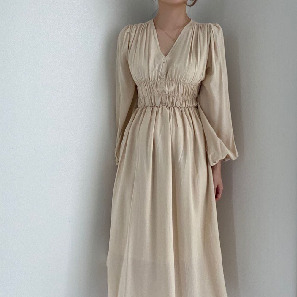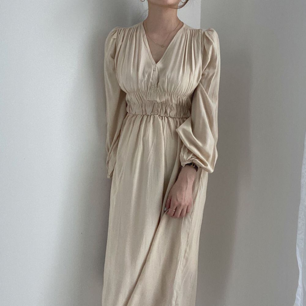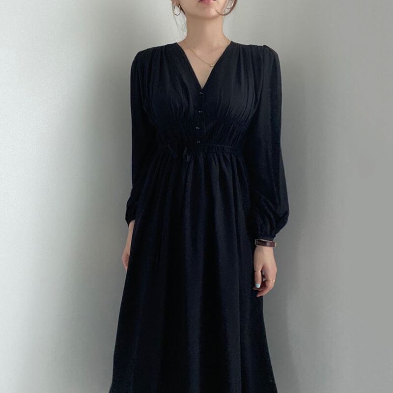 新品VネックスリムブレストプリーツワンピースドレスOP スリーブロングスカート ⦿韓国 オルチャン K-pop アイドル ジャケット スーツ ワンピース カーディガン ニット フーディー トレーナー キャミソール スカート シャツ ブラウス 5A43292769862 | K clothig adult