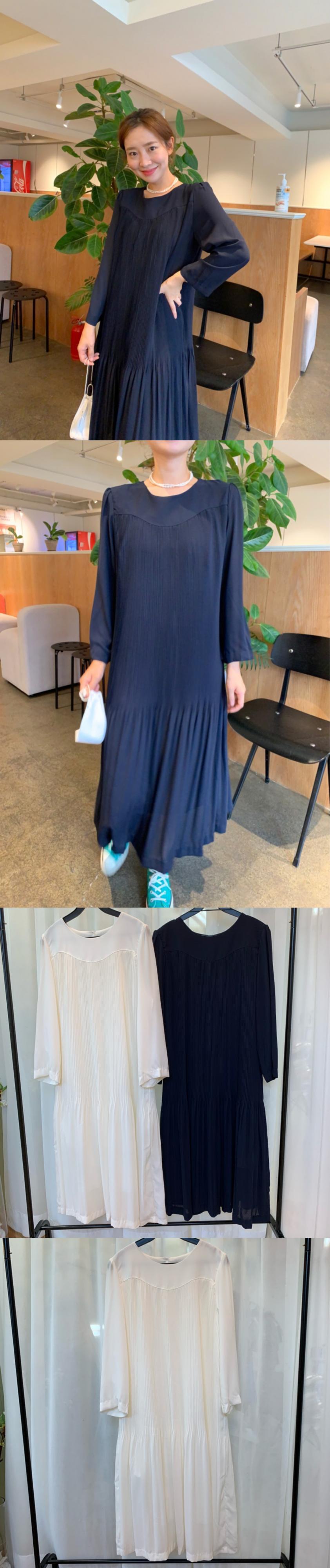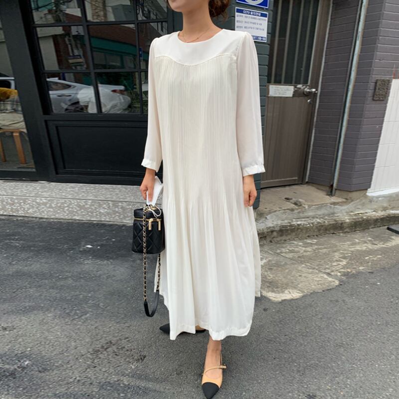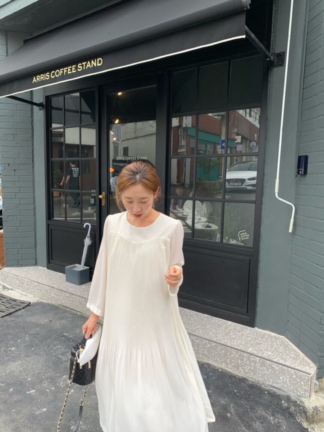新品 ラウンドネックシフォンプリーツワンピース 長袖スリーブ ⦿韓国 オルチャン K-pop アイドル ジャケット スーツ ワンピース カーディガン ニット フーディー トレーナー キャミソール スカート シャツ ブラウス 5A29747543921 | K clothig adult