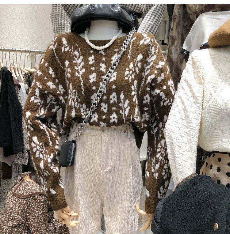 新品 カラーパターンプルオーバーセーター 大人女子☆ スウィート ピュア ⦿韓国 オルチャン K-pop アイドル ジャケット スーツ ワンピース カーディガン ニット フーディー トレーナー キャミソール スカート シャツ ブラウス 5B86572604110 | K clothig adult