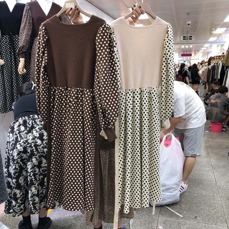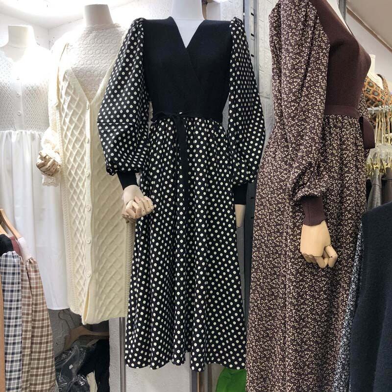 新品オータムウィンター水玉プリントVネックワンピースドレスOP スウィート 秋物 冬物 ピュア ⦿韓国 オルチャン K-pop アイドル ジャケット スーツ ワンピース カーディガン ニット フーディー トレーナー キャミソール スカート シャツ ブラウス 5B35300483397 | K clothig adult