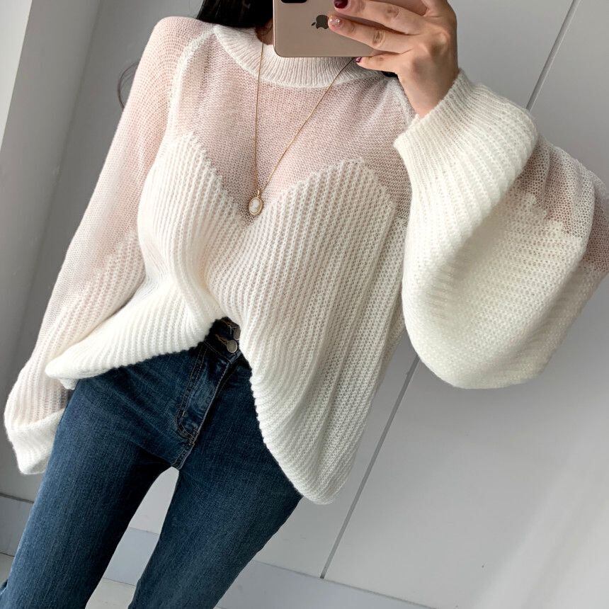 ❖ラウンドネックランタンスリーブセーター 大人女子☆エレガント ステッチ ❖ 韓国 オルチャン K-pop アイドル ジャケット スーツ ワンピース カーディガン ニット フーディー トレーナー キャミソール スカート シャツ ブラウス 5A1529854958 | K clothig adult