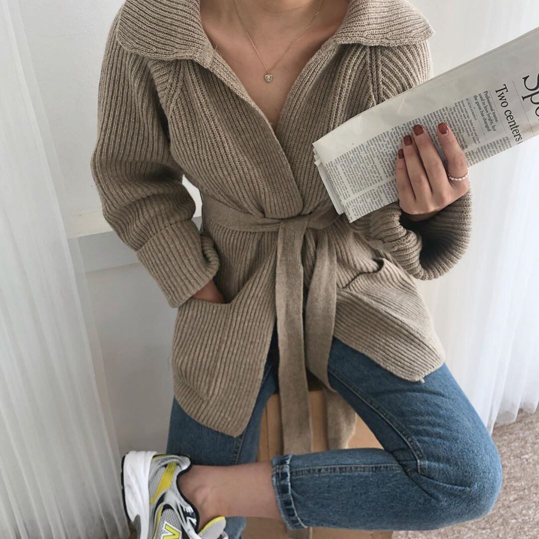 ❖パイル地ニットカーディガンベルトストラップカーディガンセーター ショートコート 秋冬❖ 韓国 オルチャン K-pop アイドル ジャケット スーツ ワンピース カーディガン ニット フーディー トレーナー キャミソール スカート シャツ ブラウス 5A91318693770