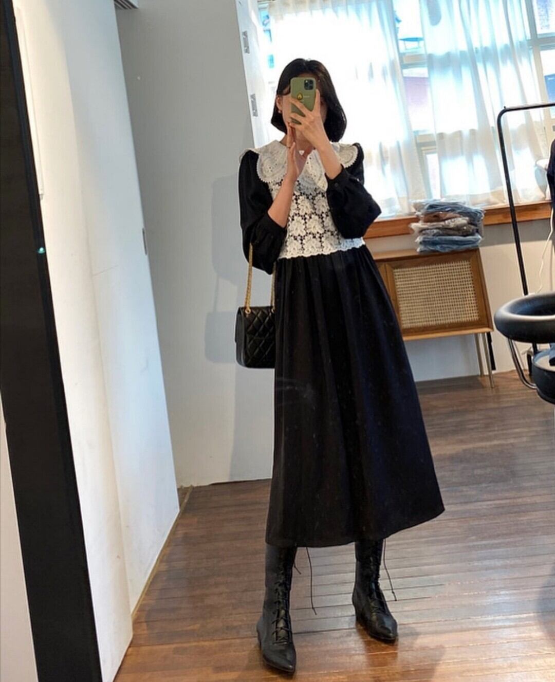 ❖レースラウンドネックひざ丈ワンピースドレスOP ロング レトロ ❖ 韓国 オルチャン K-pop アイドル ジャケット スーツ ワンピース カーディガン ニット フーディー トレーナー キャミソール スカート シャツ ブラウス 5A82532916773 | K clothig adult