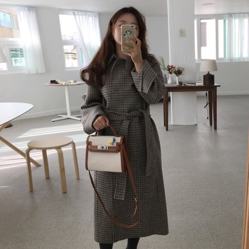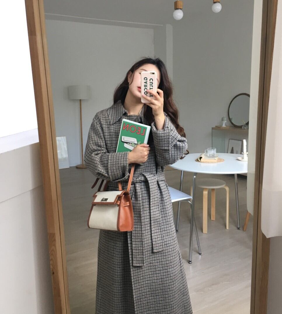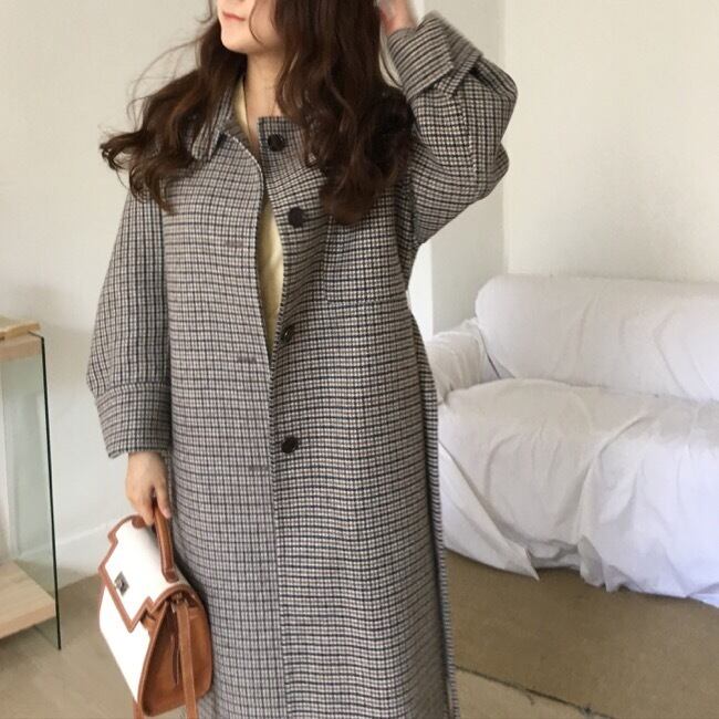 ❖ウィンターポケットチェック柄ひざ丈ロングコート 大人女子☆ レトロ 秋冬❖ 韓国 オルチャン K-pop アイドル ジャケット スーツ ワンピース カーディガン ニット フーディー トレーナー キャミソール スカート シャツ ブラウス 5A21337055199 | K clothig adult