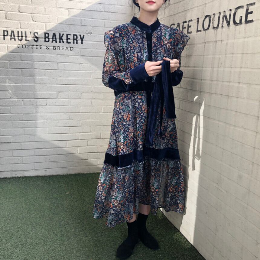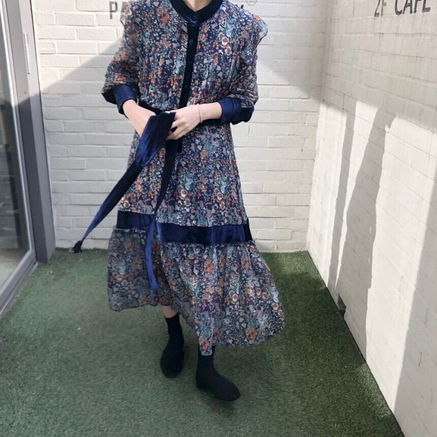 ❖ハイウェスト花柄ロングワンピースドレスOP エレガント ステッチ ❖ 韓国 オルチャン K-pop アイドル ジャケット スーツ ワンピース カーディガン ニット フーディー トレーナー キャミソール スカート シャツ ブラウス 5A4559757938 | K clothig adult