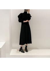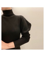 ❖KOREAスリムスリーブニットワンピースドレスOP ブラック レトロ ❖ 韓国 オルチャン K-pop アイドル ジャケット スーツ ワンピース カーディガン ニット フーディー トレーナー キャミソール スカート シャツ ブラウス 5A6576543183 | K clothig adult