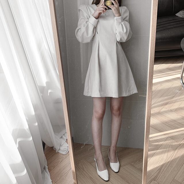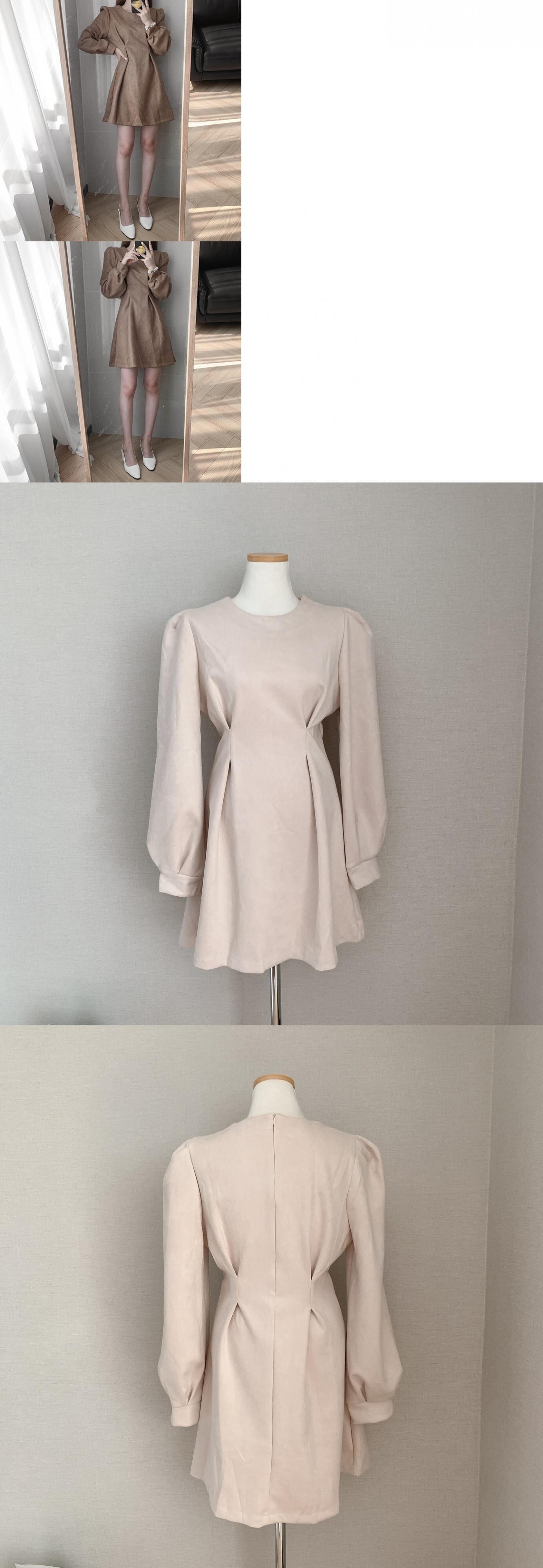 ❖PUレザーベルベットスリーブワンピースドレスOP スカート ウィンターラウンドネック プリーツ★レトロ 秋冬❖ 韓国 オルチャン K-pop アイドル ジャケット スーツ ワンピース カーディガン ニット フーディー トレーナー キャミソール スカート シャツ ブラウス 5A57450715711 | K clothig adult
