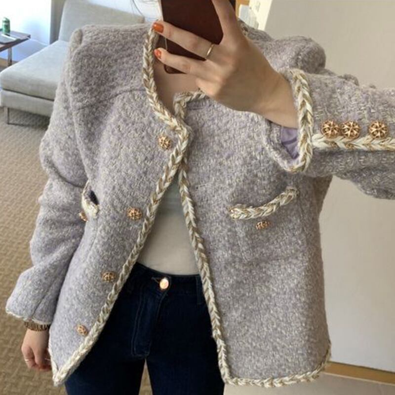 ❖KOREAウィンターラウンドネックダブルツィードジャケット ロング レトロ 秋冬 ステッチ ❖ 韓国 オルチャン K-pop アイドル ジャケット スーツ ワンピース カーディガン ニット フーディー トレーナー キャミソール スカート シャツ ブラウス 5A61462842645
