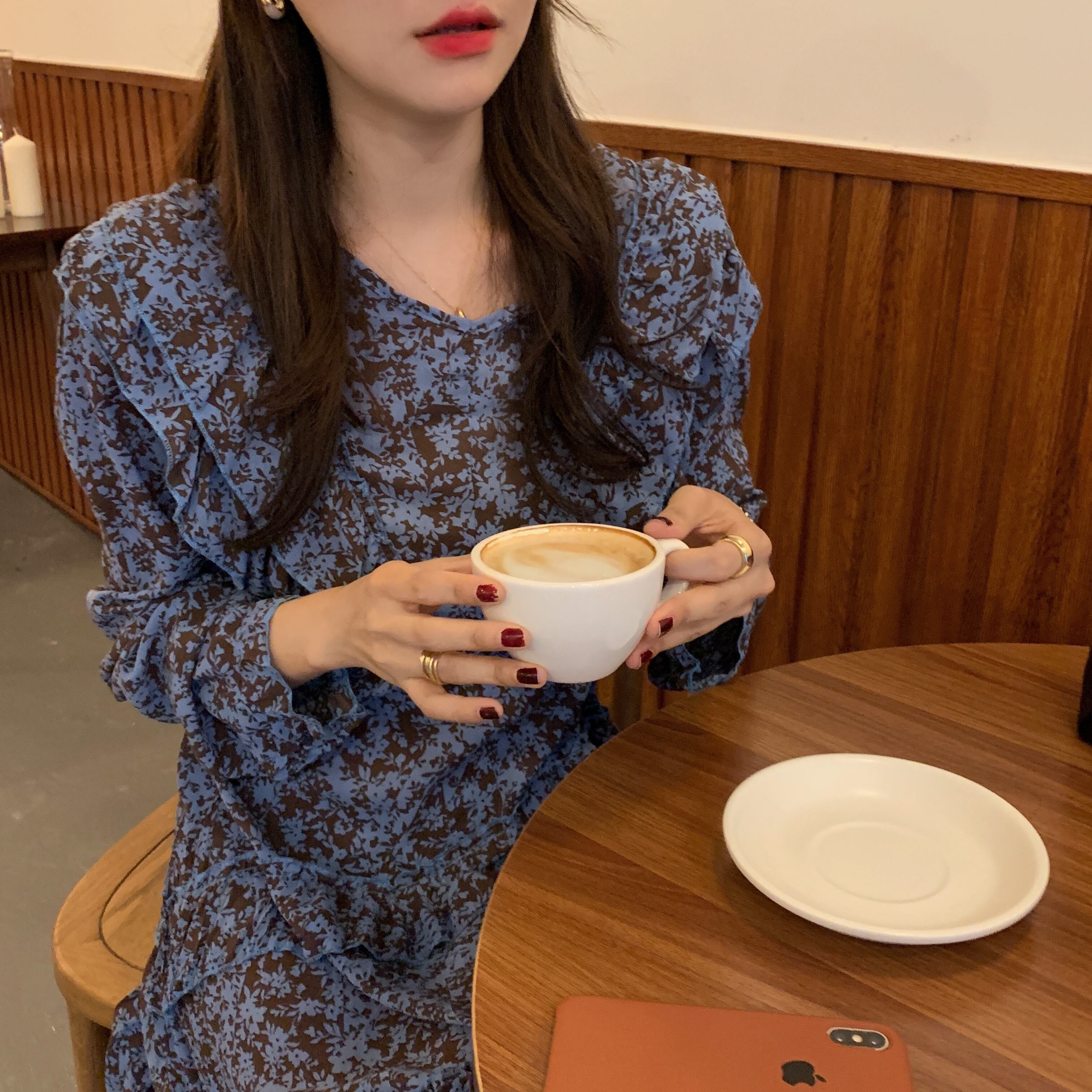 ❖Vネックラッフル花柄ロングワンピース レッド ステッチ ❖ 韓国 オルチャン K-pop アイドル ジャケット スーツ ワンピース カーディガン ニット フーディー トレーナー キャミソール スカート シャツ ブラウス 5A61044448739 | K clothig adult