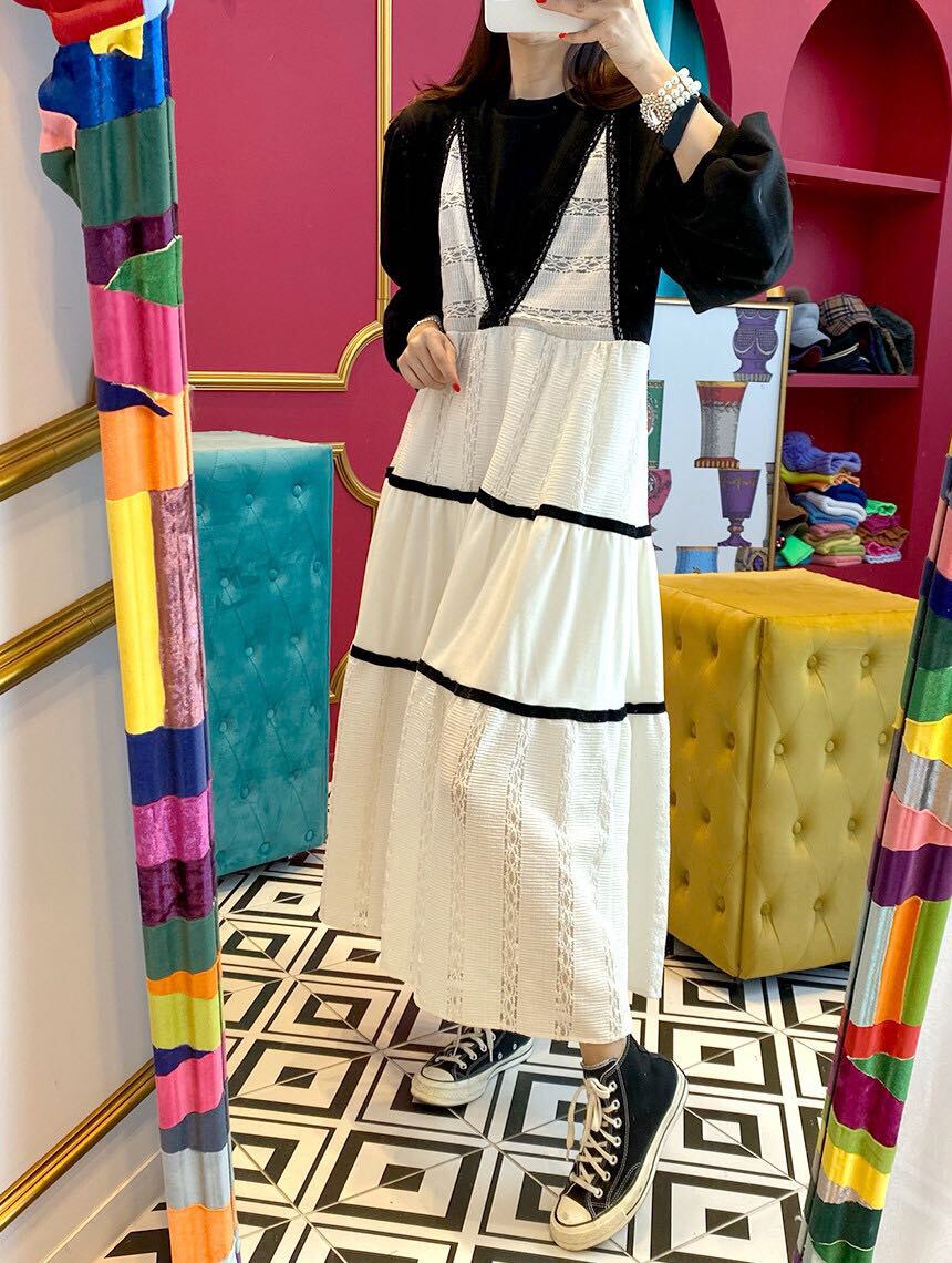❖KOREAカラーランタンスリーブティアードツーピース ステッチ ラウンドネック❖ 韓国 オルチャン K-pop アイドル ジャケット スーツ ワンピース カーディガン ニット フーディー トレーナー キャミソール スカート シャツ ブラウス 5A87361388457 | K clothig adult