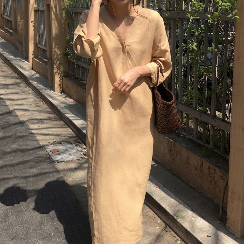 ❖KOREA Vネックルーズソリッドカラーワンピースドレス ロングスカート ソリッドカラー ❖ 韓国 オルチャン Kpop 韓流 愛の不時着 梨泰院クラス 春夏秋冬 韓国ドラマ 韓国服 Kpop帽子 Kpop雑誌 BTS NiziU TWICE BLACKPINK コリアン コリア 明洞 5A89667264503 | K clothig adult