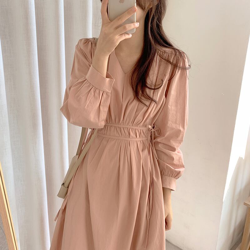 ❖KOREA VネックサイドレースウェストワンピースドレスOP ロング 秋冬 ❖ 韓国 オルチャン Kpop 韓流 愛の不時着 梨泰院クラス 春夏秋冬 韓国ドラマ 韓国服 Kpop帽子 Kpop雑誌 BTS NiziU TWICE BLACKPINK コリアン コリア 明洞 5A98762953301 | K clothig adult